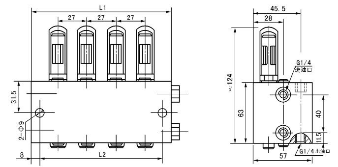 分配器適用于公稱壓力為40MPa的雙線式干油集中潤滑系統(tǒng)中。它在兩條供油主管交替的供油壓力作用下,直接由供油壓力控制活塞動作給油,完成向潤滑點定量分配潤滑脂的功能。