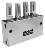 該系列雙線分配器給油口都在底部,分配器活塞正反向動作均從同一給油口排出潤滑脂,還可以從指示桿的動作直接觀察分配器的工作情況,同時還可通過調(diào)整螺釘在規(guī)定范圍內(nèi)方便地調(diào)整各個給油口的給油量。