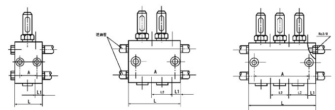 3、給油器的兩個進油口分別與兩條供油管連接,且兩側(cè)是貫通的,某一側(cè)的進油口不使用時應用R3/8螺塞封堵。