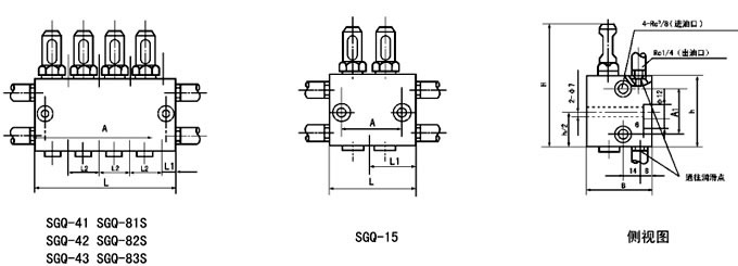SGQ系列雙線給油器適用于公稱壓力為10MPa的雙線式干油集中潤滑系統(tǒng)中,作為一種計量給油裝置。它在二條供油管交替的供油壓力作用下,由供油壓力推動活塞給油,完成向各潤滑點定量分配潤滑脂的功能。