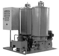 雙列式電動潤滑脂泵是由電動潤滑脂泵、換向閥、管路附件等組成。在同一底座上安裝有兩臺電動潤滑脂泵,一臺常用、一臺備用,雙泵可以自動切換,通過換向閥接通運(yùn)轉(zhuǎn)著的泵的回路,不影響系統(tǒng)的正常工作,潤滑脂泵的運(yùn)轉(zhuǎn)由電控系統(tǒng)來操縱,二臺泵也可以同時(shí)工作。它具有壓力高、流量大、遠(yuǎn)距離輸脂,安全可靠等特點(diǎn)。 |