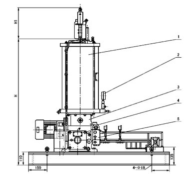 1 - 壓力表;2 - 壓力表;3 - 貯油器;4 - 電動機(jī);5 - 電動潤滑脂泵