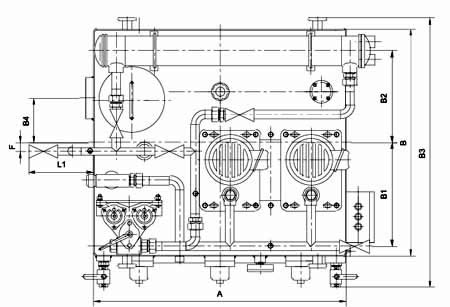 ≥250L/min稀油站,采用蒸汽加熱油箱中的潤滑油,儀表盤尚多一檢測冷卻器進(jìn)出水管壓差的儀表,其主要部件均另外裝于基礎(chǔ)上;而≤125L/min稀油站的全部部件都裝在油箱上,為整體式結(jié)構(gòu)。 |