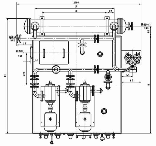 整體式稀油站的供油壓力≤0.4MPa,過濾精度0.08~0.12mm(低粘度時(shí)允許采用小值),冷卻水溫度≤30℃,壓力為0.2~0.4MPa,冷卻器進(jìn)油溫度為50℃,通過冷卻器后溫降≥8℃;采用電加熱器提高油溫。