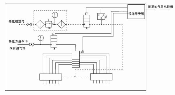 2、油氣衛(wèi)星站的進(jìn)氣接口必須與工廠壓縮空氣(允許使用氮?dú)猓┕夤芫相連,決不允許使用其它介質(zhì)的氣體,以免發(fā)生安全事故。
